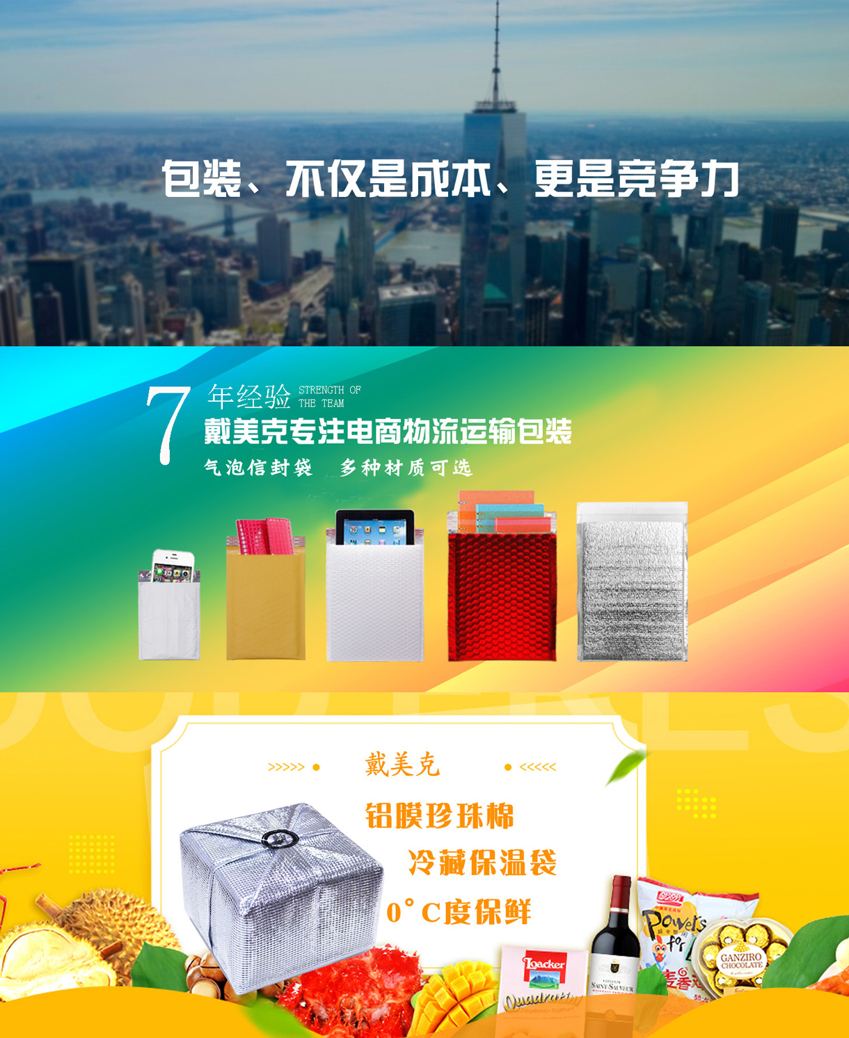 浙江戴美克包装制品有限公司是一家综合性的新型包装材料有限公司,自成立以来,一直秉持着‘求同存异,诚信为本’的发展理念,确保客户第一,服务至上,为社会各界的的用户提供优质的服务。我司有专门的技术人员为您设计安全稳定、品质优良、美观大方、价格优惠的产品方案,公司主要经营:铝箔铝膜复合卷材、气泡袋、立体袋等一系列铝箔铝膜复合包装材料。戴美克包装制品有限公司的诚信、实力和产品质量获得业界的认可。欢迎各界朋友莅临参观、指导和业务洽谈。