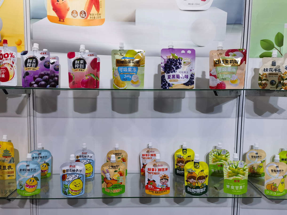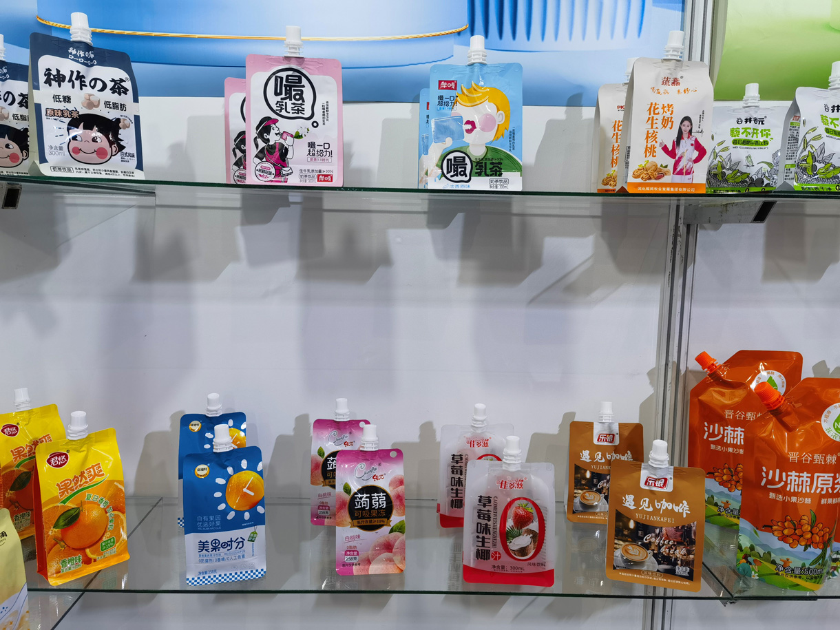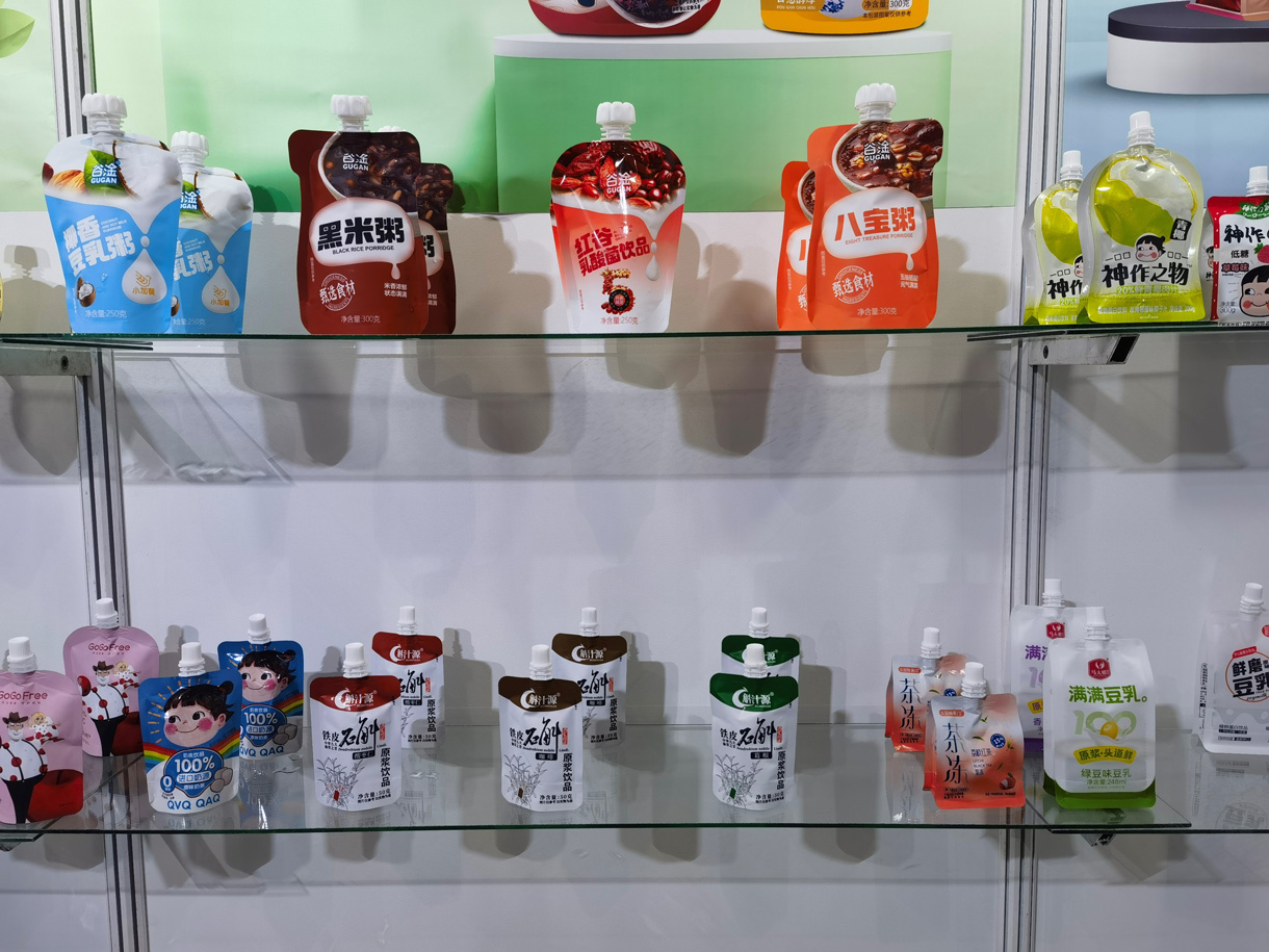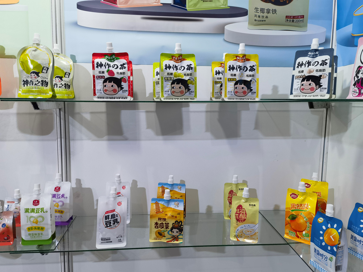 本公司主要生产各种形状(带吸嘴、各种颜色儿童防吞盖) 自立袋,耐高温121℃蒸煮吸嘴自立袋、121℃八边封异形自立袋、八边封自立袋、企鹅包、高温吸嘴豆奶袋、八边封吸嘴袋、八边封方底拉链干果袋狗粮袋等 各种异形棒袋、各种材质的杯、盒、瓶封口卷膜,各种结构的自 动包装卷膜、洗衣液、膨化食品、冷冻食品包装袋、抽真空高温 蒸煮袋(高温蒸煮牢固型、易撕型封口膜)农药包装袋、注塑模 内标签膜、不干胶商标、高阻隔包装膜以及热收缩标签等等彩印 软包材。本公司的产品广泛应用于各类食品、日用品、纺织、电 子电器等等各大行业。