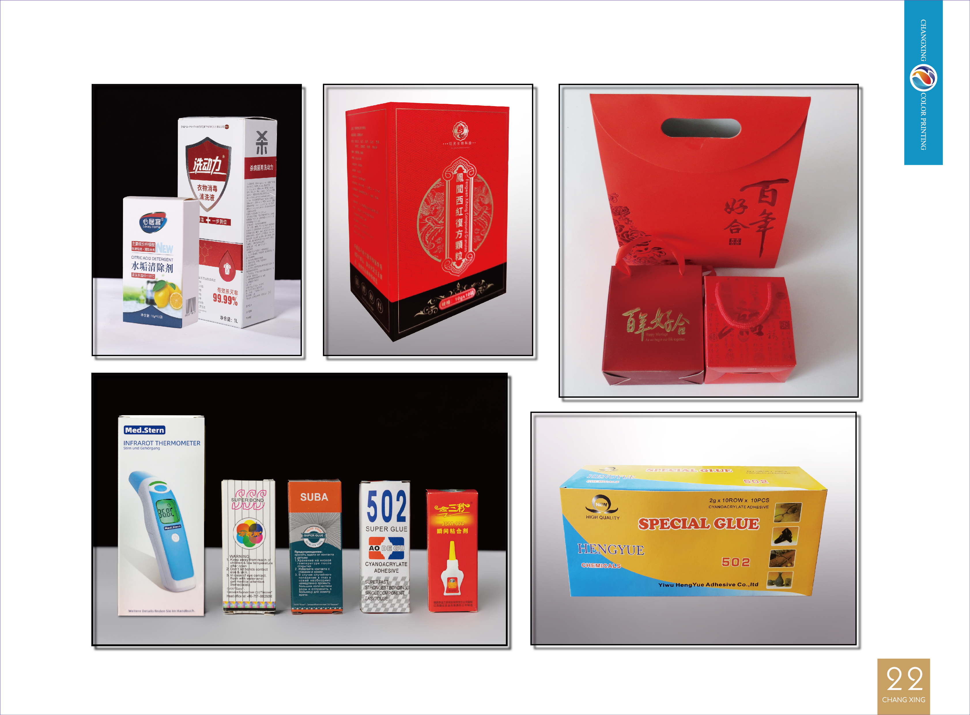 Jiangxi Changxing Color Printing Co., Ltd. is located in Xiushui County, Jiujiang City, Jiangxi Province. Its predecessor was established in Yiwu in 2008, and currently has a professional team of over 100 people, providing services throughout the entire process from design, production, to terminal sales. The self built factory covers an area of over 10000 square meters and has more than 50 advanced printing equipment, such as Heidelberg 5+1 printing machines, Komatsu four-color machines, four color machines, monochrome machines, two-color machines, fully automatic roll and flat laminating machines, oiling machines, fully automatic indentation machines, hot stamping machines, embossing machines, etc. The company mainly produces customized packaging for various industries such as paper bags, gift boxes, white card color boxes, tea boxes, mouse glue boards, cockroach houses, glue vacuum formed cards, and other daily necessities. Our products are exported to various parts of the world, including the United States, Canada, Russia, the Middle East, Africa, Southeast Asia, and Europe. Welcome international friends and customers to come to the factory for negotiations!